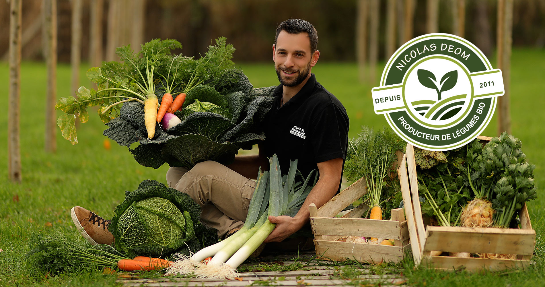 Aujourd’hui, nous produisons sous 5 000 m² de serres non chauffées ainsi qu’une dizaine d’hectares de légumes de plein champ : carottes, pommes de terre, choux, poireaux, betteraves, courges, asperges, fraises… Autant de cultures que je prends plaisir à produire avec soin et dans le respect de la nature.